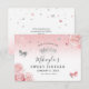 ¿Está buscando ideas elegantes para guardar la fecha que pueda personalizar para un tema de fiesta de plata y rosa claro? Puede crear su propia papelería temática de princesa Cenicienta utilizando estas invitaciones de guardar la fecha con plantilla DIY. El arte botánico de acuarela de Raphaela Wilson muestra rosas vintage de color rosa acentuadas en plata metálica falsa, una corona real bonita y confeti de mariposas brillantes. Incluso si está celebrando un "érase una vez" día especial no relacionado con una fiesta de cumpleaños número 16, estas tarjetas de guardar la fecha florales se pueden redactar de nuevo para adaptarse a bodas reales, una quinceañera de rosa claro (xv / 15 años), una ducha nupcial de color rosa, una ducha de bebé de princesa Cenicienta para una niña, entre otras fiestas importantes. ¿Necesita otra forma de papelería? Simplemente transfiera el diseño de la mariposa de la tiara a otros productos, como imanes, tarjetas postales clásicas, etc. Incluso tiene la flexibilidad creativa para editar la caligrafía y las fuentes modernas a otro estilo de tipografía. Con mucho espacio extra en la parte posterior, se puede agregar una foto glamurosa de Mis Quince Años o una foto de la pareja en lugar de un mensaje personalizado. ¡Disfrute! Categoría: papelería de boda elegante para guardar nuestra fecha; invitaciones de guardar la fecha de boda con rosas / flores de acuarela y accesorios de envío para una dulce fiesta de 16