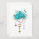 Llave de oro antiguo con rosas turquesa de moda decorados con hojas de oro blanco y cuentas rosas y azules. Color de moda. Rosas turquesas. Oro blanco. Tifanía azul.