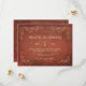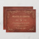 Esta boda formal ahorra la tarjeta de invitación de fecha con un diseño de marca de vino de época. Los dibujos rústicos hechos a mano de hojas de vid enmarcan los detalles importantes. En el reverso aparece un simple monograma florecido. Naranja de oro y óxido de champán / color rojo.