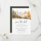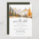 Rustic fall mountain pine forest wedding save the date.