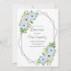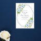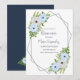 Rustic floral Quinceañera : Light blue and white floral with greenery foliage. Features navy blue and modern script typography