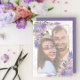 Moderna y de moda, esta boda de estilo rústico bonito Save the Date presenta un diseño rústico de acuarela floral de lavanda lila, con un diseño súper bonito de lila, lavanda y flores rosadas polvorientas, tipografía con escritura a mano y polvo de oro falso, en un falso overlay de terciopelo que imprime sobre tu foto favorita de compromiso. Forma parte de una suite boda. Póngase en contacto con el diseñador para obtener productos coincidentes. Copyright Elegant Invita, todos los derechos reservados.