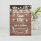 Cuenta con luces de cuerdas sobre un tarro de albañil artístico lleno de tu personalidad, salven los detalles de la fecha y esparcen flores delicadas sobre un fondo rústico de paneles de madera. El reverso muestra tu foto especial. Diseñado por Thisisnotme©