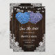 Reserva La Fecha Rustic Purple Blue Floral Hearts Lace Wood Wedding
