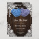 Reserva La Fecha Rustic Purple Blue Wood Lights Lace Floral Wedding