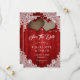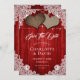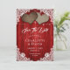Complementa su romántica fiesta de bodas rojas rústica con esta hermosa boda de arpillera y encaje, salven las tarjetas de cita con dos corazones burlap sobre un fondo de madera roja adornado con luces de cuerda y encaje floral blanco. Elementos coincidentes disponibles.