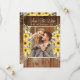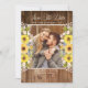 Rustic Sunflower String Lights Photo Save The Date Card. Flores de color agua dulce, luces de cuerda, sobre un fondo rústico de madera. Personalice este diseño personalizado con su propia foto y detalles.