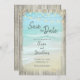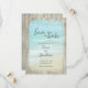 Madera rústica enmarca una foto de playa con las olas estrellándose sobre la orilla. Las luces de cadena acentúan la parte superior. Elegante guión de broche anuncia Guardar la fecha, con texto fácilmente personalizado que proporciona los detalles de su futura fecha de boda.