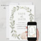 Sorprenda a sus huéspedes con esta elegante habitación, excepto la cita con hermosas hojas y calabaza blanca rústica. Simplemente agregue los detalles de su evento en esta plantilla fácil de usar para convertirla en una tarjeta de fecha única.
