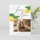 Anuncie su día especial con estilo con este limonero Guardar la tarjeta Date, mezclando el encanto rústico con la elegancia moderna. Los limones acuarelas pintados a mano y las hojas verdes exuberantes aportan el espíritu fresco de un huerto mediterráneo, mientras que el gran guión "Save the Date" añade un toque romántico y atemporal. Perfecto para parejas que albergan un boda de verano, celebración inspirada en cítricos, boda de destino en la costa de Amalfi o recepción rústica de viñedos. Esta carta marca el tono para un alegre evento rodeado de naturaleza. La combinación de ilustraciones de frutas orgánicas y tipografía moderna lo hace elegante y acogedor. Ya sea que esté planeando una ceremonia costera, una reunión de huertos en el campo o un animado fiesta de jardín, este cítrico Save the Date captura la esencia de la calidez, el romance y la celebración. Disponible como tarjeta impresa y como descarga digital.