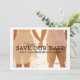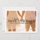 Esta carta rústica, caprichosa, salva la fecha con el texto "Por favor salven nuestra fecha" en medio de la tarjeta, superponiendo una gran foto. Personalizar con los detalles de su boda y foto favorita. Se pueden agregar fotos y texto adicionales al dorso de la tarjeta.