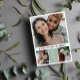 Doble cara guardar la tarjeta de fecha con tres fotos en un collage moderno y minimalista por un lado y una foto más grande por el otro. Agregue los detalles de su boda en blanco contra un fondo verde sabio. La foto que guarda la fecha muestra un borde blanco.