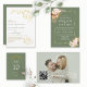 Elegant Card Design featuring one or two of your beautiful photos, QR code so your guests can RSVP and find all details online, modern calligraphy on sage green background. Use Personalize tool to add your info and replace photos with your ones. Matching items could be found in my Sage Green Gold Collection.