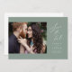 Diseño minimalista de escritura moderna en verde sabio, con foto de pareja, simple y elegante. Gran foto guardar las tarjetas de fecha para bodas modernos y otros eventos. Seleccione "Haga clic para más personalizar" en la sección "Personalizar esta plantilla" para ajustar la posición y el tamaño de la foto.