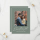 This stylish save the date features a retro inspired script "save the date" under a single photo on a classic sage green background along with simple custom text. The back of this modern save the date has a coordinating green along with a horizontal photo, room for a custom message and a QR code for your wedding website. This vertical design is great for a trendy and stylish couple and it's a great way for the engaged couple to share wedding information with friends and family. Find more colors and styles in the collection by Lea Delaveris Design. Also available as a digital save the date download.