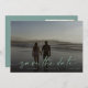 Beautiful calligraphy lettering in green to overlay your photo save the date card. This is beautiful typography on a full bleed one card photo with sage lettering. It includes a light gradient overlay if your photo needs it behind the text. You can keep or delete the soft gradient if you don't need it.