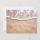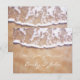 Esta invitación de guardar la fecha presenta una imagen de una playa, con el agua llegando sobre la arena.