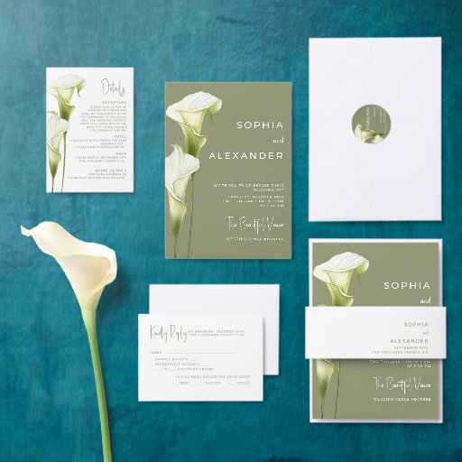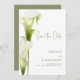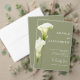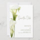 Save the Date Card for a Modern Wedding. Delicate calla lilies in soft green hues are depicted against a light background, creating an atmosphere of sophistication and tranquility. The design is modern, airy, and perfect for a stylish, romantic wedding.