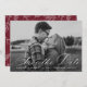 Anuncie sus próximos nupcias con estilo con nuestro script de caligrafía blanca guardar las tarjetas de fecha. El elegante guardar las fechas muestra su foto de compromiso horizontal con "Save the Date" en un guión de caligrafía blanca. Personalice la parte delantera de la foto y guarde la fecha agregando sus nombres, fecha de boda y ciudad/estado. La tarjeta se invierte para mostrar un patrón follaje blanco con un fondo burdeos o color de su elección.