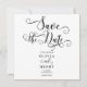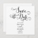 Script de Caligrafía Romántica Negro y Blanco Guardar la Fecha. Personalice otros elementos de la colección para complementar su boda.