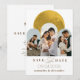 Elige estas Tarjetas de Anuncio de Fecha de Boda Modern Script Arch Celestial Moon 3 Photo Elegant con tres fotos arqueadas, un diseño tipo galería y caligrafía de letra script preppy. Tu familia y amigos la amarán. La invitación incluye la dirección de tu sitio web de boda y hashtag de redes sociales.