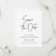 Script Simple Guardar la fecha. Esta moderna tarjeta minimalista con letras a mano boda save-the-date es perfecta para parejas que quieran hacer una declaración de estilo contemporáneo. La elegante caligrafía combinada con la paleta de colores blanco y negro crea un ahorro atemporal que los clientes no olvidarán. ¡Haga una declaración audaz con este diseño único y elegante!