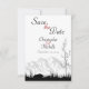 Sencillos y hermosos anuncios de boda de escena de montaña en negro, blanco y rojo para guardar la fecha. ^