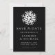Anuncie su boda de invierno con estilo con nuestro Simple Snowflake Black and White Save the Date. Con un audaz copo de nieve blanco y "Save the Date" en elegantes caracteres serif y caligráficos grabados en un fondo negro, este diseño captura la belleza del invierno. Personalice su nombre, fecha de boda y ubicación a continuación. Perfecto para bodas de invierno, feriados y Navidades, esto ahorra la fecha marca el tono para una celebración mágica.