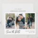 Esta sencilla y elegante tarjeta plana de aviso de boda con tres fotos modernas presenta tus fotos y un mensaje de "Guarde la fecha" en una escritura única que primero escribimos a mano y luego adaptamos para usar aquí. Este elemento del diseño es una imagen y no se puede alterar. Pero puedes elegir cambiar la fuente, la puntuación o el color utilizado para el otro texto en la parte delantera y/o trasera. Por ejemplo, puedes elegir dar un cierto color al texto de tus nombres. O puedes elegir eliminar algo o cambiar un campo de texto completamente con un mensaje diferente. El color predeterminado para tus nombres y la fecha en la parte delantera es un negro ligeramente suavizado. En la parte trasera, elegimos un orden atípico para la información, poniendo el texto "por favor guarde la fecha" después del texto "para la boda de", lo que le da un encanto de un camino menos transitado. Puedes alterar fácilmente este orden o cambiar cualquier otra cosa para adaptarlo a tus necesidades. En la parte trasera, hemos elegido un tono llamado Humo Blanco que es un gris muy claro, con mayormente blanco en él. Puedes cambiar esto fácilmente seleccionando uno de los colores básicos en las herramientas de edición o ingresando un número de color si tienes un tono específico en mente que encontraste en tu investigación, o mirando la herramienta de espectro