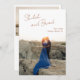 Bodas modernas salven la tarjeta de fecha con un diseño simple con tus nombres en un guión elegante en la parte superior izquierda y tu fecha, ciudad y estado abajo a la derecha, sobre tu foto vertical favorita. La plantilla incluye una superposición de tamaño a lo largo de la parte superior para ayudar a que el texto resalte frente a la foto y se pueda eliminar en la herramienta de edición de diseño. La parte posterior tiene una segunda imagen horizontal junto con detalles adicionales en cobre / marrón. Este diseño minimalista y monocromático funciona bien para una variedad de estilos y temas bodas. Si lo prefiere, puede cambiar los colores de la herramienta de edición de diseño.
