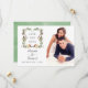 Pino rústico nevado y floral de abeto acuarela Navidad guardar la fecha de la boda con un fondo de lavado de acuarela verde salvia.