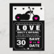 Boda de silueta de motociclismo negro y blanco y rosa salva las fechas. Una invitación a la boda de tema muy elegante y contemporánea. ¡Una gran invitación para cualquier ciclista, rockero o boda poco convencional! ¡Defiéndete de la multitud con estas grandes invitaciones negras, rosas y blancas! Creada y copyright 2011 Julie A Farrell OddLotPaperie Designs. Si necesitas ayuda para personalizar esta invitación, ponte en contacto conmigo a través del enlace de mi tienda y estaré encantado de ayudarte. Una impresionante boda de ciclistas salva la fecha con motocicletas y corazones rosados y GRAN tipografía!