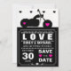 Boda de silueta de motocicleta en negro, blanco y rosa. Una invitación de boda con un tema realmente genial, elegante y contemporáneo. Una excelente invitación para cualquier boda de motociclista, rock n roll o extravagante. ¡Destaca entre la multitud con estas fantásticas invitaciones en negro, rosa y blanco! Creado y registrado en 2011 por Julie A Farrell de OddLotPaperie Designs. Si necesita ayuda para personalizar esta invitación, por favor contácteme a través del enlace en mi tienda y estaré encantado de ayudarle. ¡Un impresionante "save the date" de boda de motociclistas con motocicletas y corazones rosas y una tipografía GENIAL!