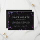 Las brillantes luces de bokeh brillan en rosa translúcido, morado y azul en el fondo de este glamoroso oscuro guardar la fecha, con simple escritura blanca de moda y letras sans serif. Cambie el texto por el suyo propio y haga clic en "Personalizar" para cambiar los tipos de letra y el color del texto.
