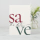 Estas tarjetas de 5" x 7" ahorran las tarjetas de fecha y presentan un diseño minimalista en letras verdes de borgoña y cazador con marcadores de posición en la parte posterior para los nombres de las parejas comprometidas, la fecha de boda y la información del lugar y tu foto favorita!