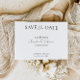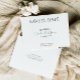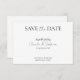 Esta moderna boda minimalista en blanco y negro salva las tarjetas de fecha con texto de escritura negro en un fondo blanco clásico. Un diseño sencillo y elegante Personalizar la invitación de guardar la fecha con la información de tu boda y usa la herramienta 'editar con diseño' en Zazzle para editar todo el texto, fuentes, colores de fondo, colores de texto y opción para subir y añadir tu foto de pareja favorita al dorso de la invitación. Para más bodas, excepto las invitaciones de fecha, visite nuestra colección de fechas de guardar en https://www.zazzle.co.uk/collections/save_the_dates-119327072976167840