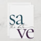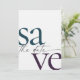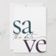 Estas tarjetas de 5" x 7" ahorran la fecha de las tarjetas con un diseño minimalista en letras puras, verde azuladas y grises oscuras berenjenas con marcadores de posición en la parte posterior para los nombres de las parejas comprometidas, fecha de boda e información del lugar y tu foto favorita!