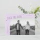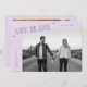 Modern and stylish save the date card featuring a modern typography text that says "save the date." One photo in the font and one on the back. The background is lilac.