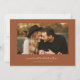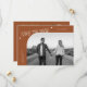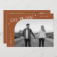 Modern and stylish save the date card featuring a modern typography text that says "save the date." One photo in the font and one on the back. The background is terracotta.
