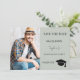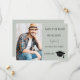 On front: Add your own vertical size photo of the graduate. A trendy muted sage green colored background, black text. Templates for a name and date. The name is written with a modern hand lettered style script. With a cap, tassel topper.