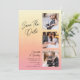 Simple Wedding Save The Date Photo Picture Invitation incluye cuatro de tus fotos favoritas, tres en la parte delantera y una al revés con el texto "Save the date" en la elegante y moderna tipografía de escritura caligráfica. Sencillo, moderno y elegante para la celebración del día de la boda. Diseñado por ©Evco Studio www.zazzle.com/store/evcostudio