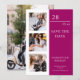 Simple Wedding Save The Date Photo Picture Invitation incluye cuatro de tus fotos favoritas, tres en la parte delantera y una al revés con el texto "Save the date" (Guardar la fecha) en una elegante y moderna tipografía con un fondo morado y blanco. Sencillo, moderno y elegante para la celebración del día de la boda. Diseñado por ©Evco Studio www.zazzle.com/store/evcostudio