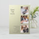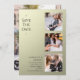 Simple Wedding Save The Date Photo Picture Invitation incluye cuatro de tus fotos favoritas, tres en la parte delantera y una al revés con el texto "Save the date" (Guardar la fecha) en una elegante y moderna tipografía de escritura en un fondo beige shimmer. Sencillo, moderno y elegante para la celebración del día de la boda. Diseñado por ©Evco Studio www.zazzle.com/store/evcostudio