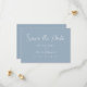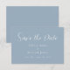 Sencillo y moderno blanco sobre fondo azul “Guardar la fecha” de boda. Perfecto para una boda de cualquier temporada.