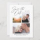 Esta sencilla y elegante tarjeta de "save the date" es la forma perfecta de compartir la emocionante noticia de tu compromiso y próxima boda con tus seres queridos. La parte delantera de la tarjeta presenta tipografía manuscrita informal en la esquina superior izquierda que se superpone ligeramente al diseño único de tres fotos, ¡mostrando tus impresionantes fotos! La parte trasera tiene espacio para tu código QR personalizado y detalles adicionales de la boda que son muy fáciles de personalizar. Este diseño moderno está disponible en múltiples combinaciones de colores y también se puede comprar como descarga digital. Creado y protegido por derechos de autor por Lisa McLean Design y solo disponible para uso personal. Por favor, consulta mi tienda para ver la colección completa. ¡Felicidades por tu compromiso!