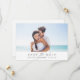 Invite a sus amigos y familiares a guardar su cita con nuestra sencilla, limpia y moda foto para guardar las tarjetas de fecha. Las tarjetas planas presentan su foto de compromiso de orientación horizontal favorita con una banda blanca en la parte inferior, mostrando "guardar la fecha" y sus nombres y fecha boda en una mezcla de moda de tipos modernos de bloques y caligrafía. Añada detalles adicionales a la parte posterior, incluidos sus nombres completos, ubicación del boda, sitio web e indicación de que le seguirá una invitación formal.