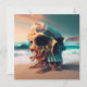 A large skull sits on top of the sand in the ocean, in the style of surreal 3d landscapes, intense color palette, redshift, vibrant illustrations, photo-realistic landscapes, textural explorations
