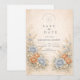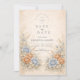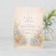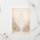 This romantic wedding design features soft blue and peach florals arranged in a delicate garden composition. Inspired by wildflowers and classic botanical illustrations, the artwork blends muted neutrals with airy florals for a timeless, refined look. The elegant layout and gentle color palette make it ideal for couples planning a nature-inspired wedding with a graceful, understated aesthetic that feels both modern and enduring.