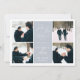 Sencilla y elegante, nuestra foto Romantic Request guarda la tarjeta de fecha con cuatro de tus fotos favoritas de compromiso dispuestas en formato cuadrado, con tus detalles bodas en el centro en blanco sobre gris niebla. "Guardar la fecha" aparece en tipografía de escritura blanca con un corazón de moda trabajado en el diseño. Agregue los detalles de su boda, incluidos nombres, fecha de boda y ubicación. Las tarjetas cambian a las bandas horizontales modernas en gris y blanco, con un campo de texto adicional para el sitio web de su boda o información adicional.