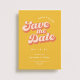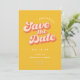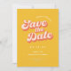 Una boda ahorrar la fecha con una foto personalizada y tipografía de estilo retro en color melocotón es una manera única y elegante de anunciar su próximo enlace a sus amigos y familiares. La fuente de estilo vintage de melocotón agrega un toque de fantasía y retro. Este diseño seguramente impresionará y emocionará a todos para su gran día.